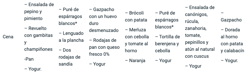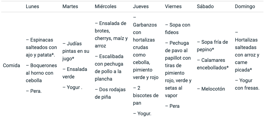 Ejemplo de menú semanal